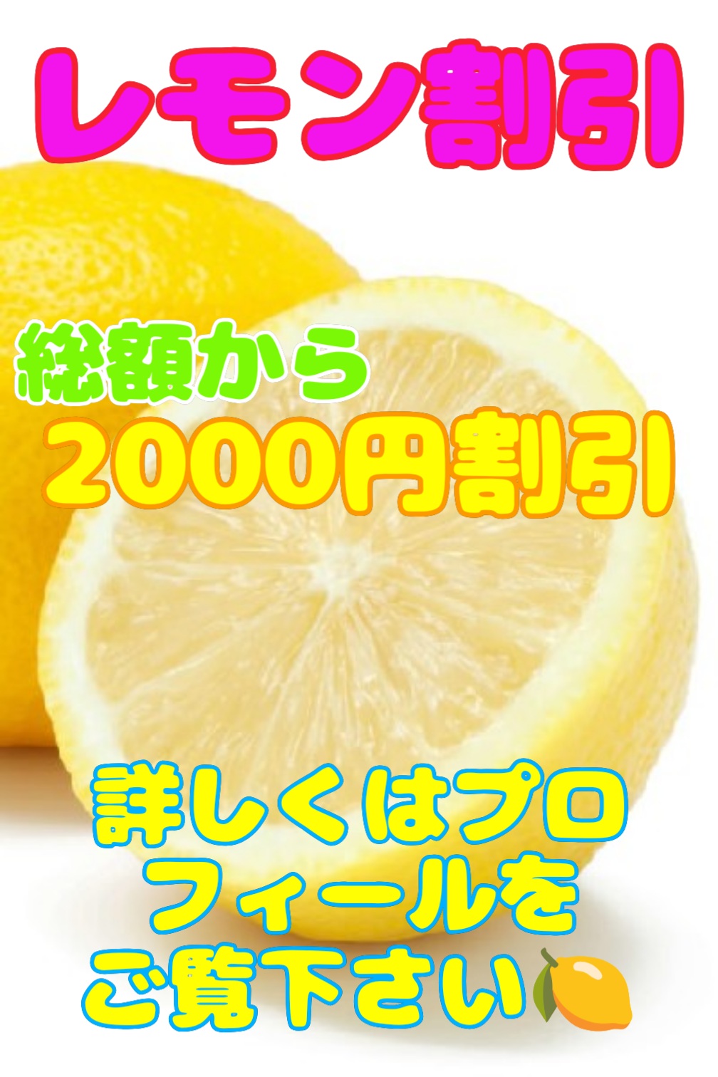 受付の際「レモン割引見た」と必ずおっしゃって下さいね